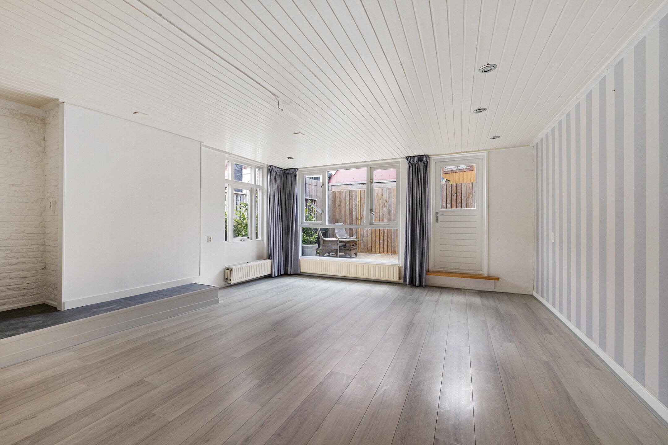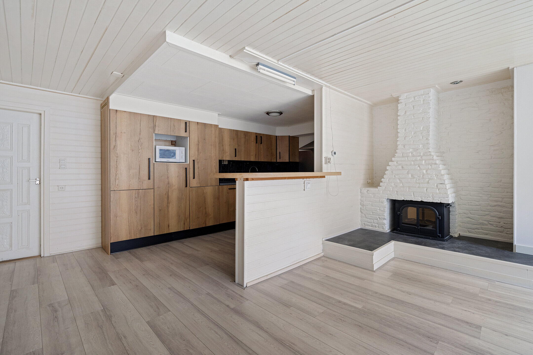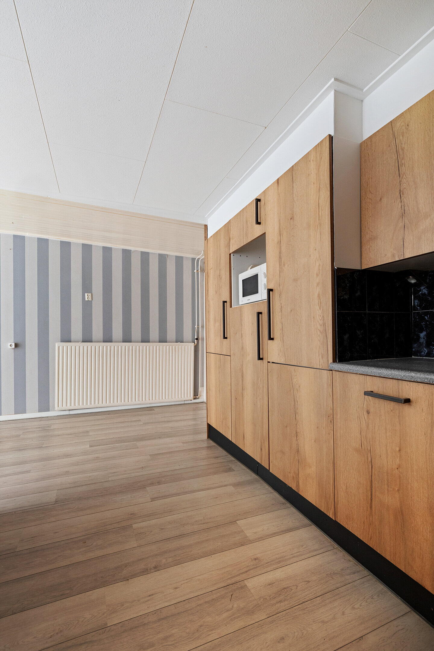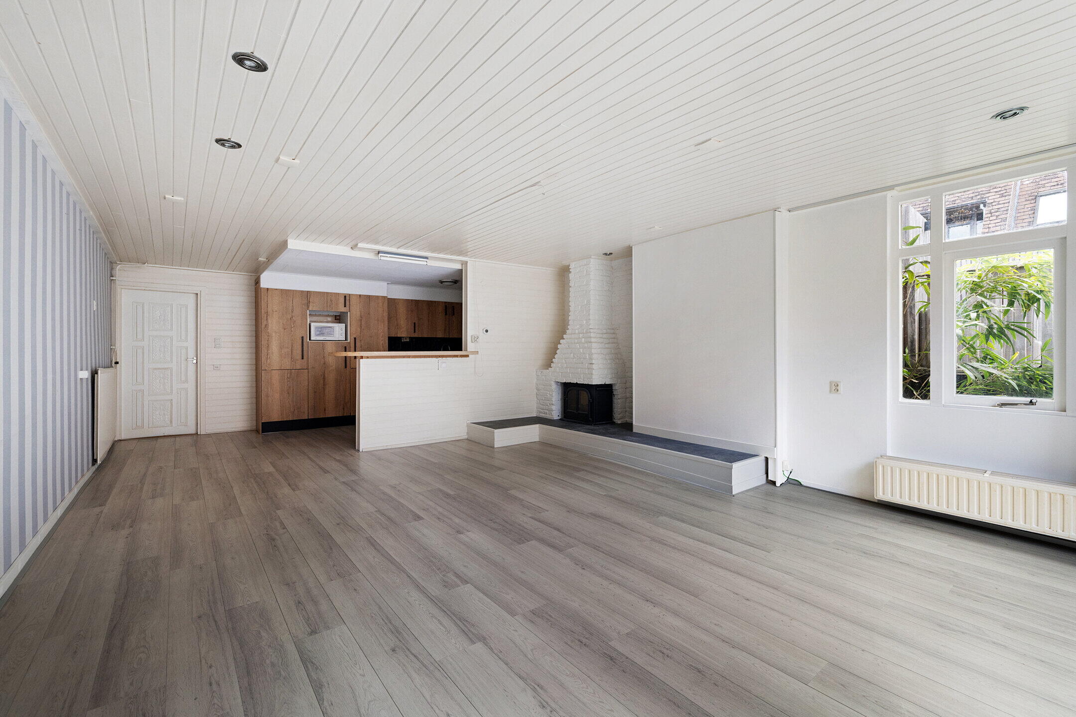 Via de entree en lange hal met trapopgang wordt de eerste woonlaag bereikt. De overloop biedt toegang tot de ruime en lichte woonkamer met open keuken. De keuken en woonkamer worden op een speelse manier van elkaar gescheiden door een barretje.