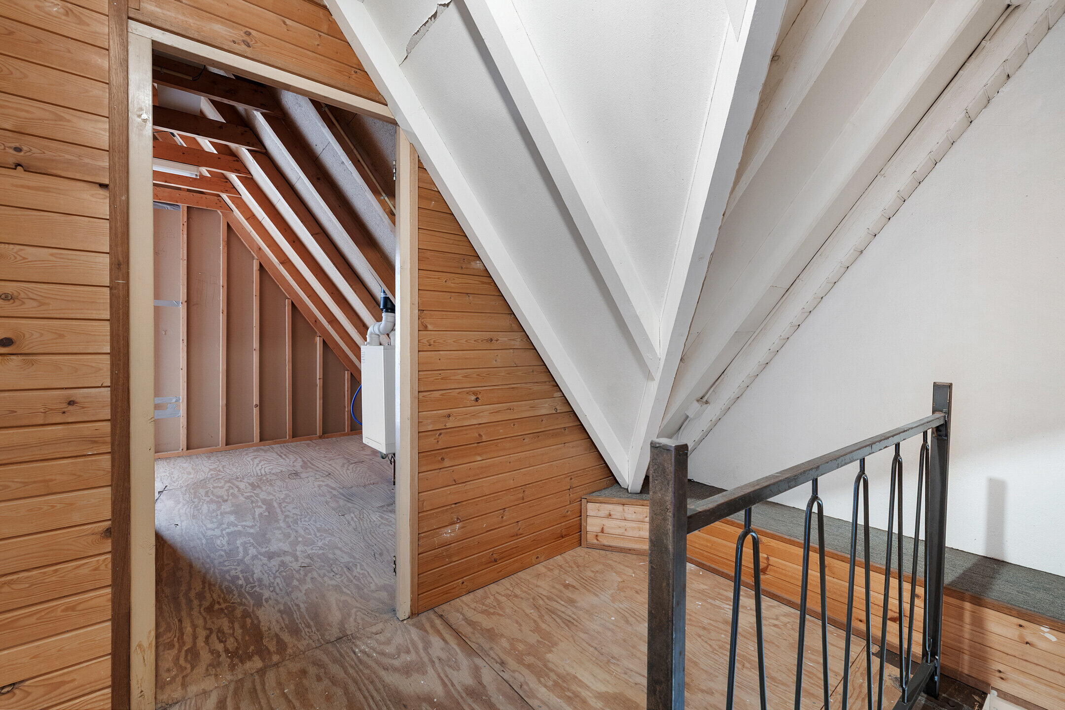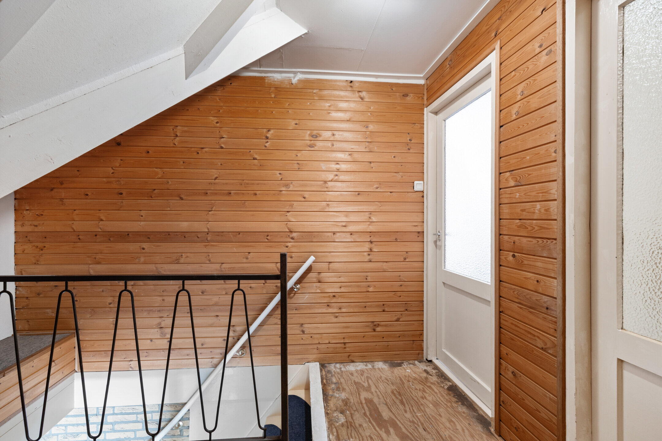 De overloop geeft toegang tot twee slaapkamers en de badkamer. De slaapkamers (circa 15.2m² en 10.1m²) bieden voldoende ruimte. De badkamer is gedateerd, maar functioneel en biedt mogelijkheden voor modernisering.